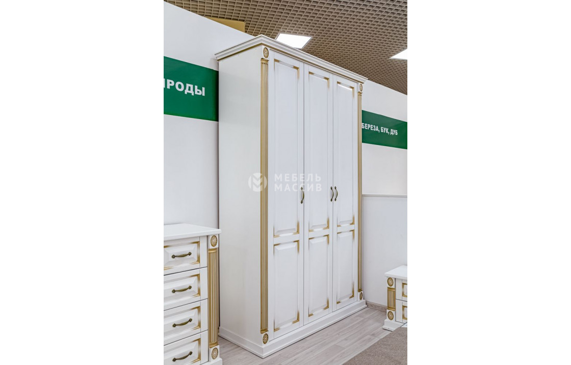 Шкаф 3-х створчатый из серии Пальма (белая эмаль с золотой патиной)