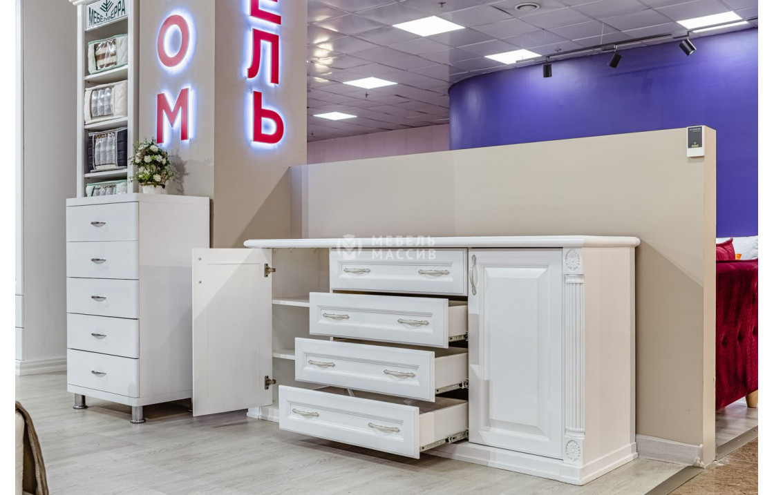 тумба альберти под тв включает в себя четыре выдвижных ящика и два закрытых шкафчика со сплошными дверцами. модель имеет продолговатую столешницу, на которую при желании можно поставить плоский телевизор. купить представленное изделие по специальной цене можно в нашем интернет-магазине.