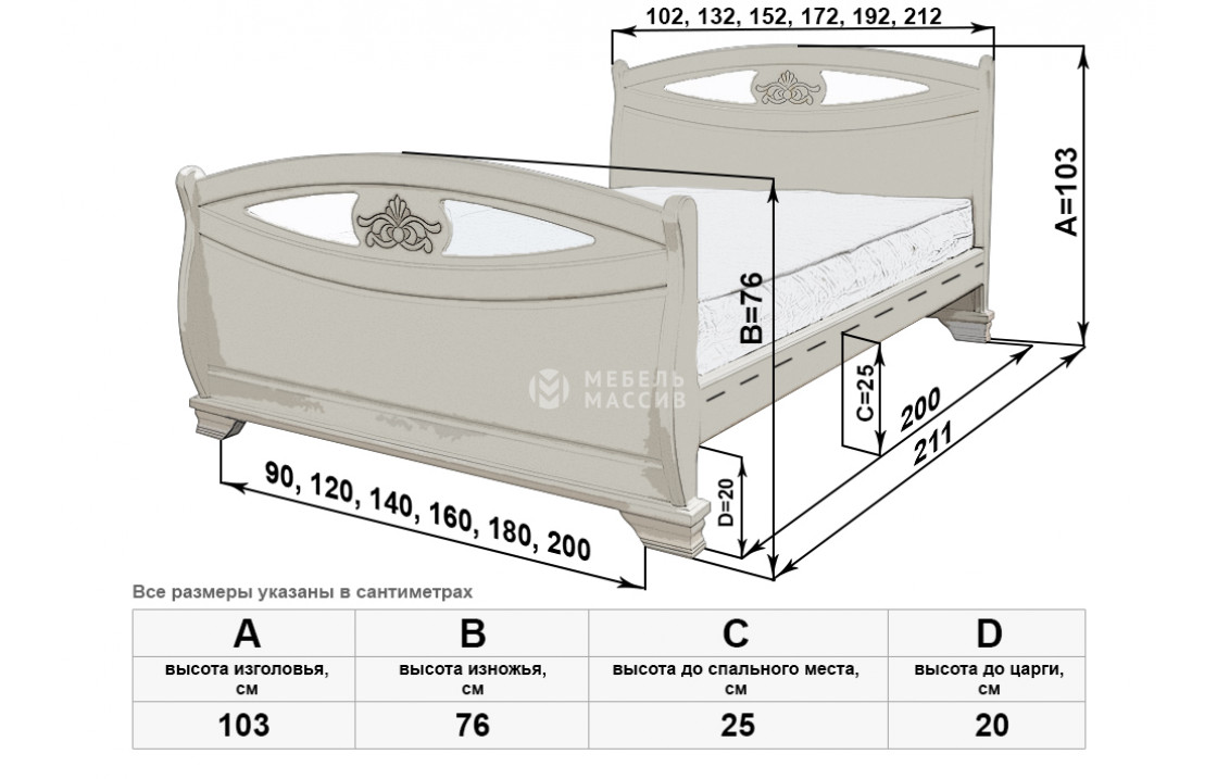 Кровать Эльза имеет две идентичные спинки, отличающиеся аккуратной изогнутостью, декоративными углублениями и цветочными узорами. Изделие, которое можно купить по специальной цене в нашем интернет-магазине, оснащено устойчивыми ножками, защищающими напольное покрытие от повреждений. Осуществляется доставка на дом по Смоленску и Смоленской области.| Размер | Цена | |