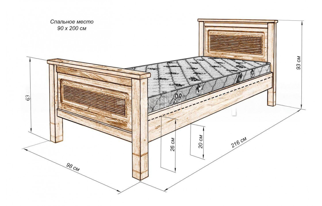 Кровать Фермер из экологически чистой натуральной древесины. изделие представлено в четырёх вариантах исполнения из древесины на выбор: сосна, берёза, бук или дуб. широкий выбор вариантов покраски позволяет органично вписаться в любой интерьер. отличается износостойкостью, прочностью, лаконичным дизайном. приобретайте изделие по выгодной цене с доставкой на дом в интернет-магазине «мебель массив». Осуществляется доставка на дом по Смоленску и Смоленской области.| Размер | Цена | |
