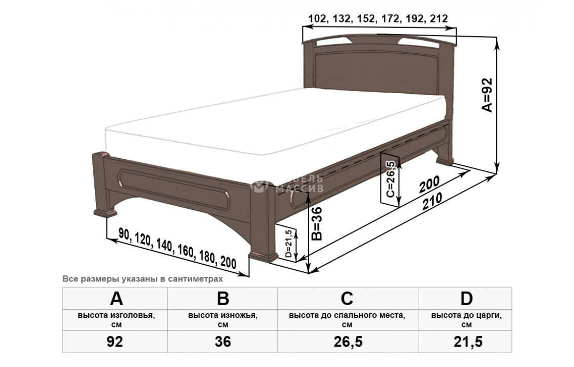 Прочная кровать Лаура сделана из экологически чистого древесного массива. Модель имеет чуть изогнутое изголовье с двумя продолговатыми отверстиями и крепкий каркас с устойчивыми ножками. Изделие, которое можно купить по выгодной цене в нашем интернет-магазине, представлено в различных комплектациях. Осуществляется доставка на дом по Смоленску и Смоленской области.| Размер | Цена | |