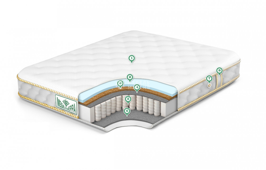 - Кокос 1 см ? Кокос - переплетенные волокна кокосового ореха, растительного происхождения. Исключительные свойства кокоса в прочности, упругости и гигиеничности. Материал придает жесткости матрасу. Обладает отличной вентилируемостью, устойчив к любой влажности и перепадам температуры, гипоаллергенный и долговечный.