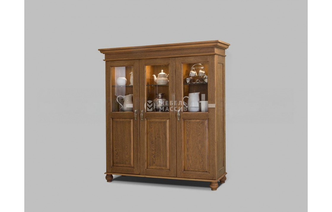 Трехстворчатый сервант из коллекции Винтаж – интересный представитель современной мебели, которую можно легко адаптировать и под классические интерьеры. Он имеет средние габариты и хорошую вместительность. Внутреннее пространство корпуса модели занимают полки, одна часть которых расположена за стеклом, а другая – за монолитным элементом створки. Благодаря наличию застекления в серванте можно хранить декоративные предметы, которые хочется выставить напоказ. Вместе со стеклом материалом изготовления изделия служит настоящее цельное дерево, обеспечивающее надежность и продолжительную эксплуатацию. Доставка по Смоленску и Смоленской области.| Размер | Цена | |