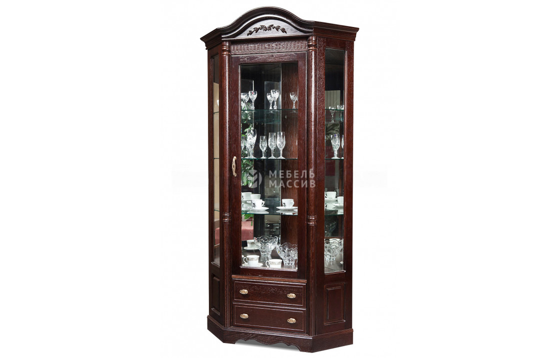 Скошенный сервант Валео - небольшой предмет мебели, сочетающий в себе необычный внешний вид и хорошую функциональность. Дизайн изделия выдержан в классическом стиле. Основным отличительным элементом является застекленная створка, занимающая большую часть фасада. Внутреннее пространство за стеклом отведено под полки, куда можно поместить небольшие растения, элитную посуду и коллекционные предметы. Также модель оборудована четырьмя выдвижными ящиками для скрытного содержания вещей. Внешний вид мебели сразу бросается в глаза. Высокий фронтон украшен цветочной инкрустацией, присутствует и резьба на деревянных элементах. Остаётся только выбрать цвет мебели и подходящую фурнитуру. Доставка по Смоленску и Смоленской области.| Размер | Цена | |